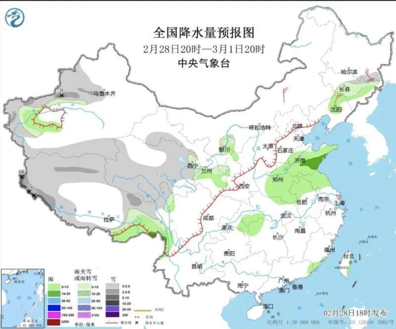 新疆西南部和伊犁河谷、西藏大部、青海大部、甘肃河西、宁夏大部、黑龙江东南部、吉林中东部等地部分地区有小到中雪或雨夹雪。辽宁中北部、黄淮、江淮北部、江南西北部等地部分地区有小到中雨。